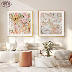 抽象花卉客厅装饰画沙发背景墙组合挂画肌理手绘油画饭厅卧室壁画