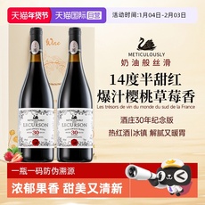 法国原酒进口晚收甜红葡萄酒热红酒女士微醺晚安果酒过新年货送礼
