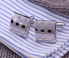 【礼盒装】包邮简约法式衬衫男士袖口钉男女银色大格法式袖扣