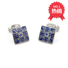 优质欧美法式袖扣男士花蓝色衬衫袖钉商务礼品cufflinks礼盒装