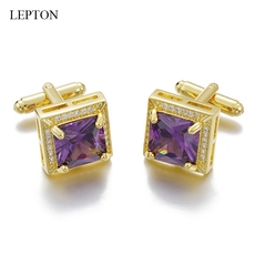 新品男士轻奢定制紫红锆石袖扣衬衫法式水晶袖口钉生日礼物礼盒装