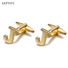 送礼盒高档袖扣字母J金色/银色英文品质商务衬衫袖口法式男士袖钉