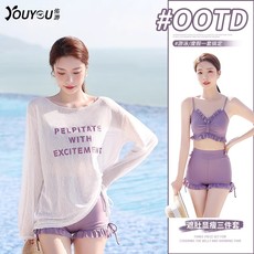 分体泳衣女海边度假高级感长袖防晒三件套性感纯欲平角泡温泉泳装