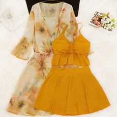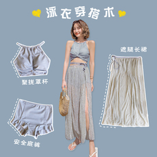 网红风纯欲性感吊带分体泳衣女夏比基尼泡温泉显瘦遮肚长裙三件套