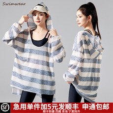 泳衣女分体三件套女长袖连帽罩衫微胖保守宽松显瘦泡温泉连帽泳装