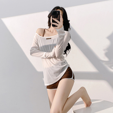 绝美泳衣女性感辣妹长袖防晒罩衫分体三件套运动显瘦泡温泉游泳装