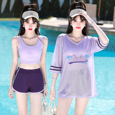大码胖mm游泳衣女分体式三件套学生保守显瘦遮肚网红风泡温泉泳装