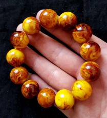 天然波兰琥珀老蜡算盘珠手链 老蜜蜡原矿算盘珠手串送证书