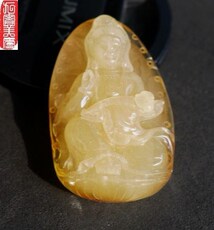 纯天然鸡油黄蜜蜡睡观音雕刻挂件16-17克琥珀蜜蜡吊坠丹可罗波兰
