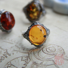 {银匣子}复古宫廷风格 925纯银镶波兰天然琥珀戒指 多色大号