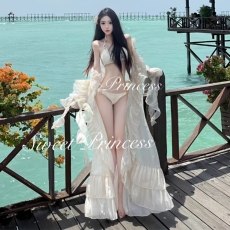 泰国巴厘岛三亚泳衣女欧美新款性感裙式比基尼三件套长裙绑带纱裙
