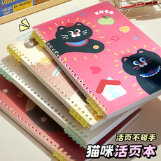 苹果猫咪~不硌手b5活页本可拆卸线圈笔记本初中生专用A5加厚本子