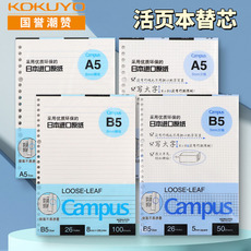 日本KOKUYO国誉B5活页本替芯A5学生横线campus考研笔记本本子错题可撕网格内页纸26孔替换芯可拆卸记事本草稿