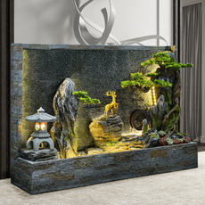 热销室内装饰造景客厅落地隔断屏风假山流水喷泉摆件水幕墙玄关循