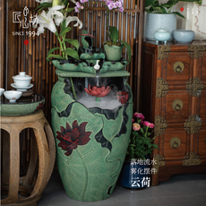 陶瓷招财循环流水系喷泉加湿器景观瓶客厅会所乔迁新中式落地摆件
