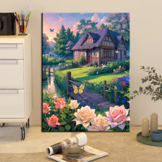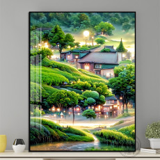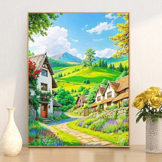 卡通现代简约风景钻石画2025新款绿色小屋5d点贴钻十字绣卧室满钻