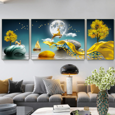 5d钻石画满钻三联画客厅发财麋鹿风景点钻贴钻十字绣手工diy