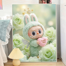 夏日粉绿玫瑰拉布布2025新款钻石画治愈diy手工带框装饰画十字绣