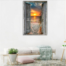 带框钻石画满钻魔方钻儿童手工贴钻绣卧室治愈系海边风景小屋新款