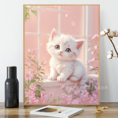 可爱花卉风景猫咪钻石画2025新款手工自己点贴钻石十字绣卧室满钻
