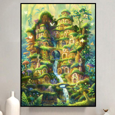 2025新款童话世界彩虹树屋diy钻石画手工十字绣刺绣客厅装饰画