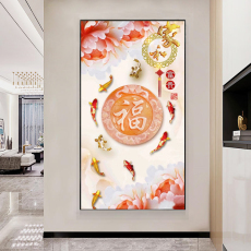 招财锦鲤福袋5d钻石画满钻十字绣福字新款贴钻客厅简单大气钻石绣