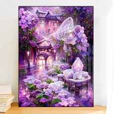 紫色城堡风景钻石画2025新款手工砖石贴画卧室5d点贴钻十字绣满钻