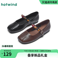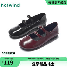 热风黑色玛丽珍鞋女鞋2026年春季新款百搭浅口单鞋配裙子小皮鞋
