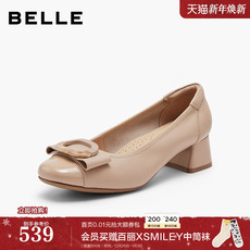 百丽真皮通勤浅口单鞋女2026春季新款粗跟上班不累脚高跟鞋F1X1DA