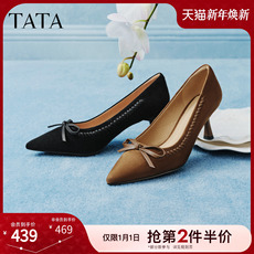TATA他她女鞋2026春季新款尖头高跟鞋羊皮女中高浅口单鞋UZG01AQ6