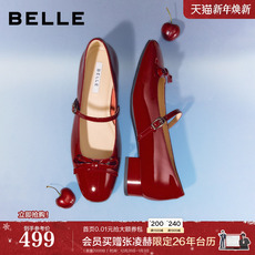 百丽粗高跟真皮浅口单鞋红色玛丽珍女26春季新款婚鞋单鞋BR4E7AQ6