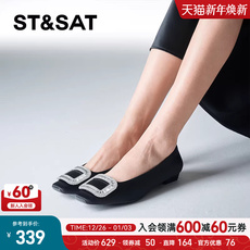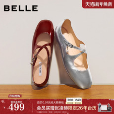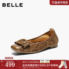 百丽复古方扣平底单鞋女2026春季新款真皮通勤浅口单鞋子F1W1DAQ6