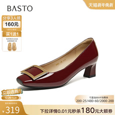 百思图2026春季新款舒适通勤金属扣粗跟方头女浅口单鞋K5803AQ6