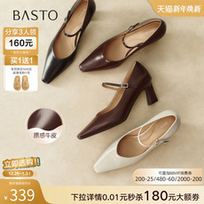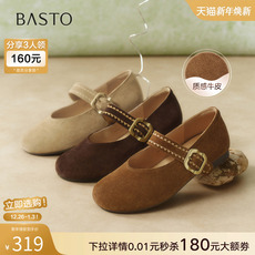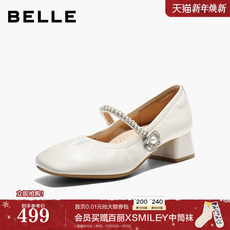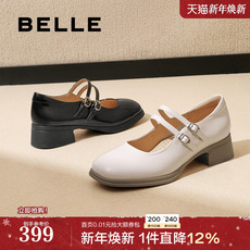 百丽粗跟玛丽珍鞋子女26春季新款复古真皮小皮鞋浅口单鞋3A6C2AQ6