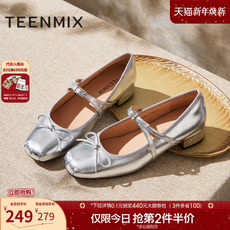 天美意复古运动厚底银色玛丽珍鞋女浅口单鞋春季新款KH004AQ5