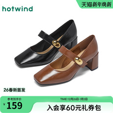 热风复古玛丽珍女鞋2026年春季新款法式方头高跟单鞋浅口女鞋子