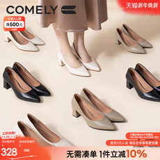 康莉春季新款单鞋女高跟浅口尖头简约羊皮粗跟简约职业工作鞋