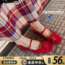 复古圆头小红鞋浅口芭蕾舞鞋女2025春季新款平底休闲玛丽珍单鞋子