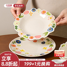 川岛屋花卉浮雕餐具漂亮的盘子家用菜盘陶瓷餐盘高级感早餐甜品盘