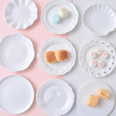 欧式浮雕蛋糕点心盘子 菜盘陶瓷6寸小碟小圆盘平盘摆盘白瓷盘家用