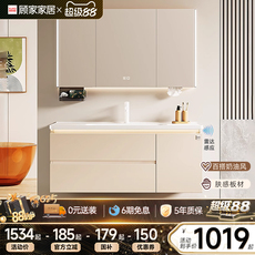 顾家家居新款奶油风浴室柜陶瓷一体盆组合卫生间洗漱台洗脸手盆柜