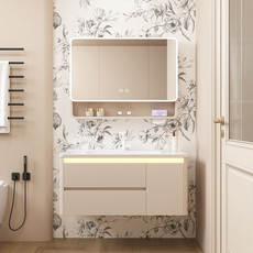 橡木烤漆奶油风陶瓷一体盆智能浴室柜组合卫生间洗漱台洗手洗脸盆