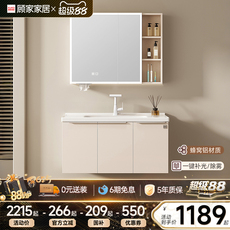 顾家家居蜂窝铝浴室柜陶瓷一体盆卫生间洗手脸盆卫浴柜组合洗漱台