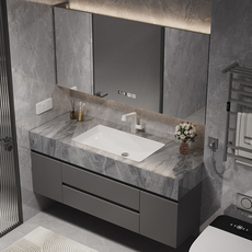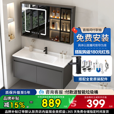 轻奢浴室柜组合岩板无缝陶瓷一体盆卫生间洗手台洗脸盆洗漱台套装