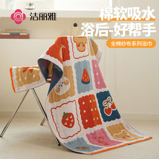 洁丽雅纱布浴巾儿童纯棉家用吸水成人棉纱卡通洗澡女浴巾全棉新款