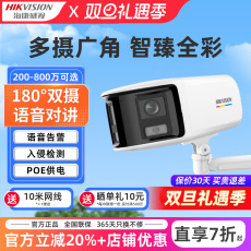 海康威视监控摄影头800万poe网络180°双摄广角夜视臻全彩摄像机