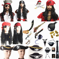 万圣节道具加勒比海盗cosplay帽子配件海盗刀枪钩金币海盗旗眼罩
