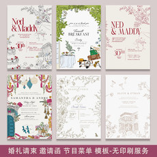 手绘婚礼邀请函请柬餐饮价格表海报流程表菜单设计立牌生日电子版