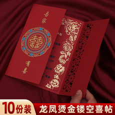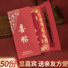 50份请柬婚礼喜帖2025年新款请帖喜庆结婚邀请函定制雕刻龙凤镂空