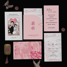 ins风粉色请帖结婚2024婚礼定制高端个性喜帖小清新请柬邀请函